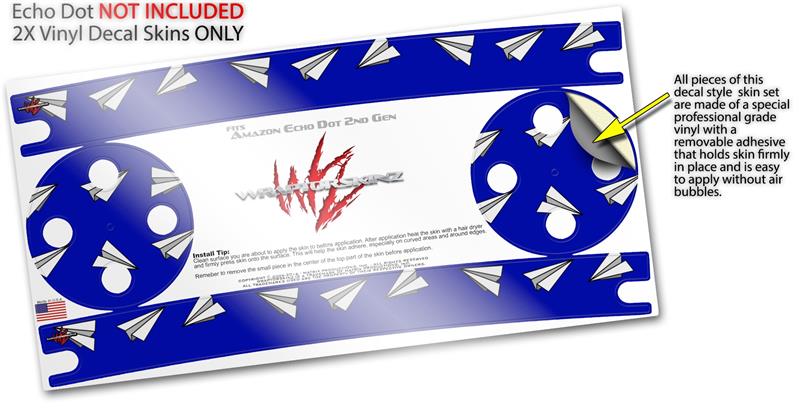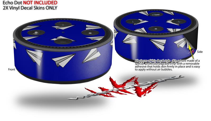 Skin Wrap Decal Set 2 Pack for Amazon Echo Dot 2 - Paper Planes Royal Blue (2nd Generation ONLY - Echo NOT INCLUDED)