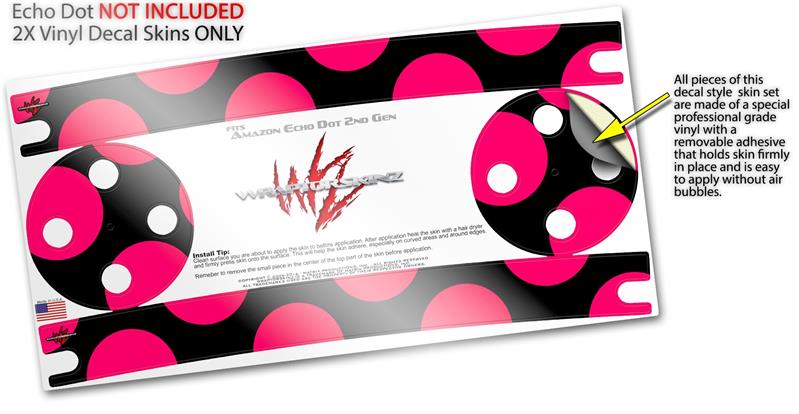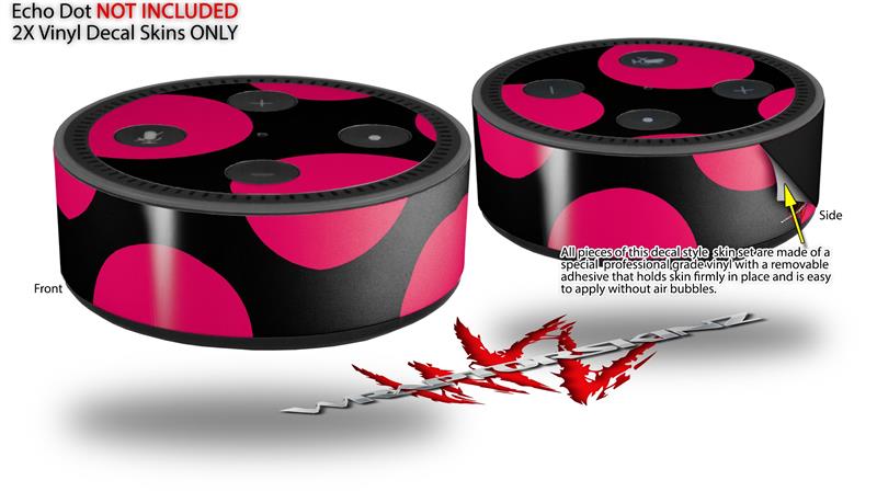 Skin Wrap Decal Set 2 Pack for Amazon Echo Dot 2 - Kearas Polka Dots Pink On Black (2nd Generation ONLY - Echo NOT INCLUDED)