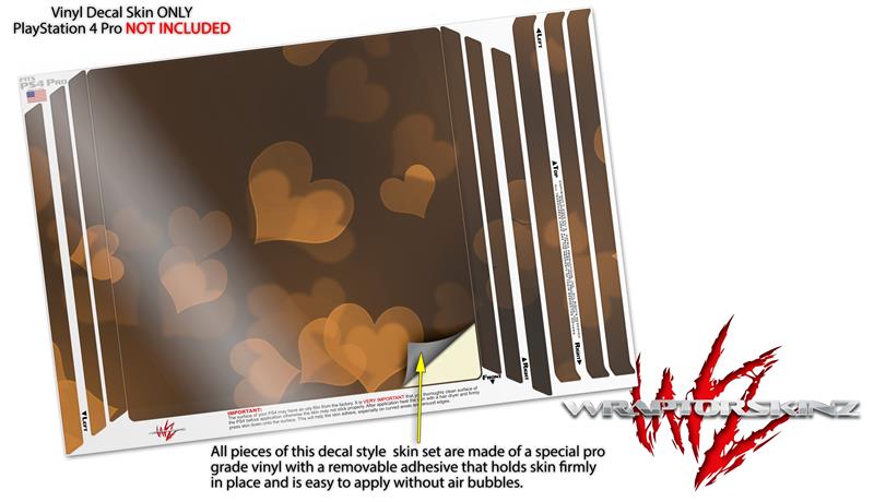 Vinyl Decal Skin Wrap compatible with Sony PlayStation 4 Pro Console Bokeh Hearts Orange (PS4 NOT INCLUDED)