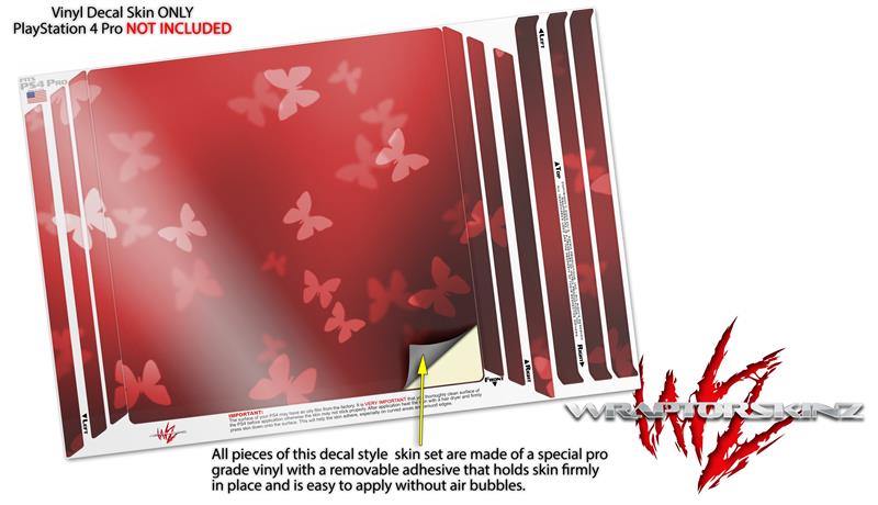 Vinyl Decal Skin Wrap compatible with Sony PlayStation 4 Pro Console Bokeh Butterflies Red (PS4 NOT INCLUDED)