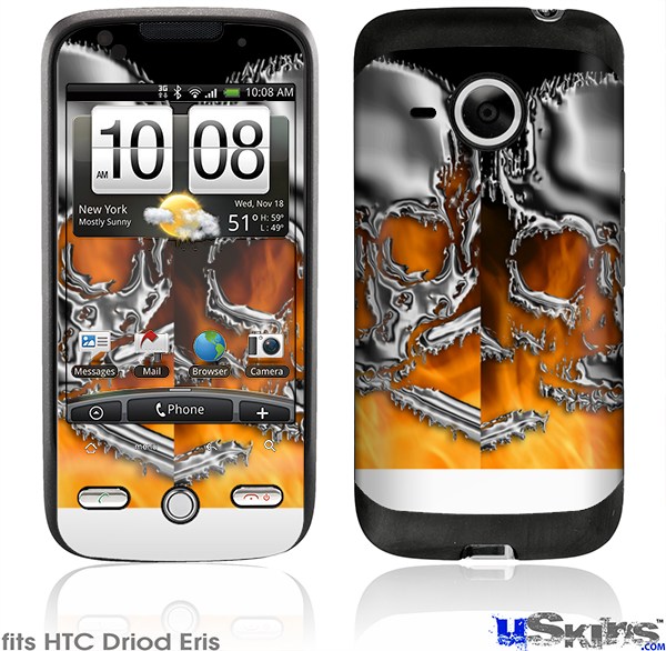 HTC Droid Eris Skin - Chrome Skull on Fire