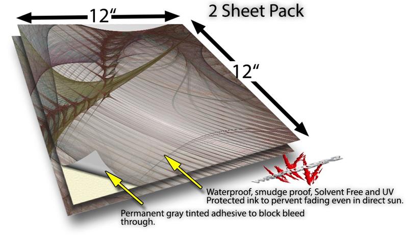 WraptoSkinz™ skin vinyl craft sheets are printed using superb photo quality designs and vibrant colors printed with special UV Protected fade resistant inks that last even in direct sun for years. Unlike other brands our inks are NOT solvent based. WraptorSkinz are a manufactured from professional grade 3mill vinyl. These sheets are waterproof, the designs will not run or smear even if submerged in water.