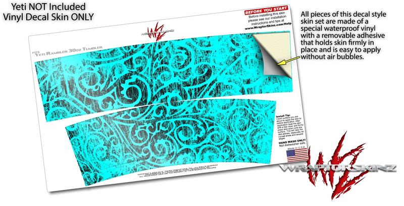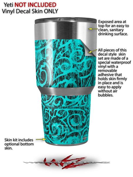 Skin Decal Wrap for Yeti Tumbler Rambler 30 oz Folder Doodles Neon Teal (TUMBLER NOT INCLUDED)