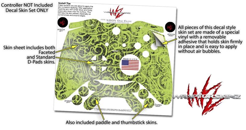 Folder Doodles Sage Green - Decal Style Skin fits Microsoft XBOX One ELITE Wireless Controller