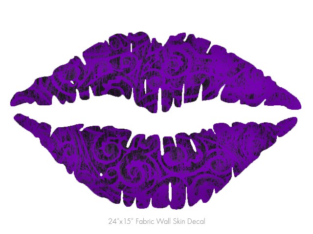 Folder Doodles Purple - Kissing Lips Fabric Wall Skin Decal measures 24x15 inches