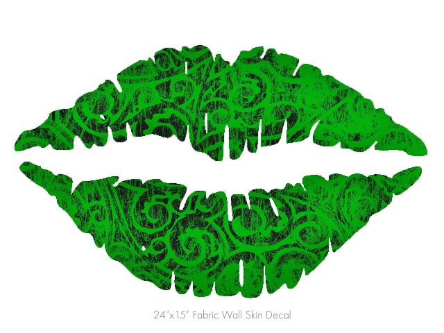 Folder Doodles Green - Kissing Lips Fabric Wall Skin Decal measures 24x15 inches
