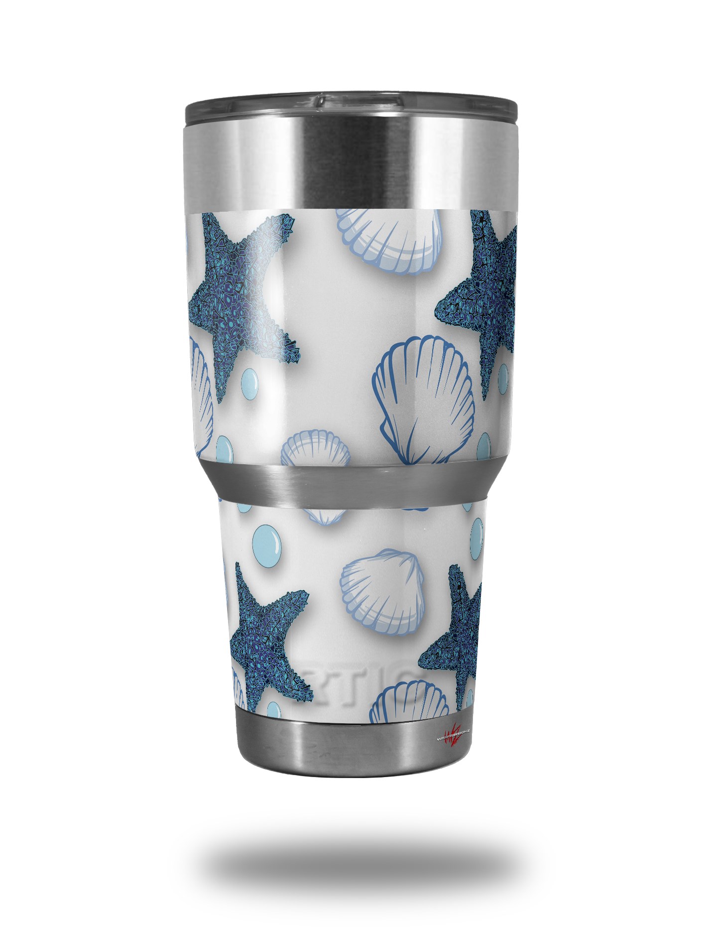 WraptorSkinz Skin Wrap compatible with RTIC 30oz ORIGINAL 2017 AND OLDER Tumblers Starfish and Sea Shells White (TUMBLER NOT INCLUDED)
