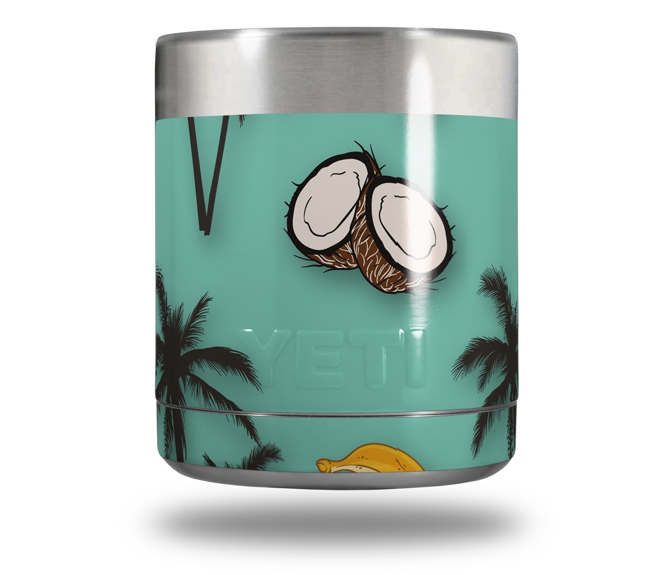 Skin Decal Wrap for Yeti Rambler Lowball - Coconuts Palm Trees and Bananas Seafoam Green