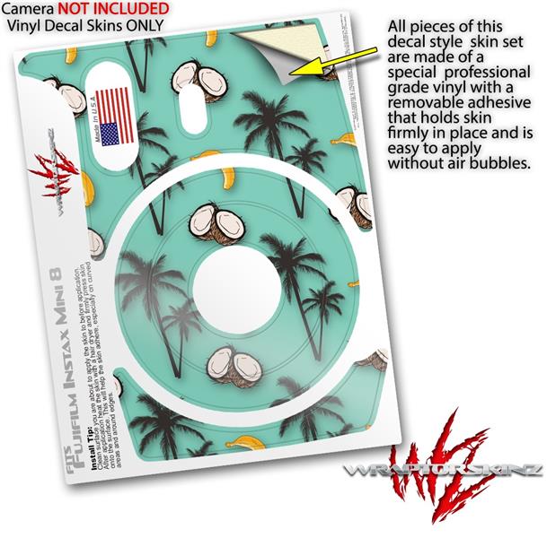 WraptorSkinz Skin Decal Wrap compatible with Fujifilm Mini 8 Camera Coconuts Palm Trees and Bananas Seafoam Green (CAMERA NOT INCLUDED)