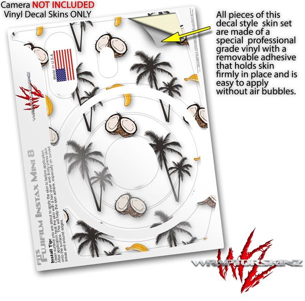 WraptorSkinz Skin Decal Wrap compatible with Fujifilm Mini 8 Camera Coconuts Palm Trees and Bananas White (CAMERA NOT INCLUDED)