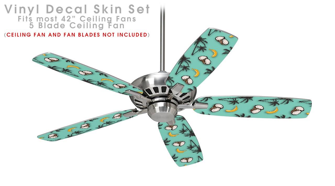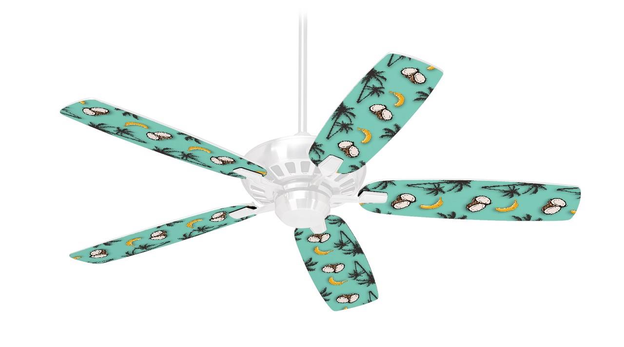 Coconuts Palm Trees and Bananas Seafoam Green - Ceiling Fan Skin Kit fits most 42 inch fans (FAN and BLADES SOLD SEPARATELY)