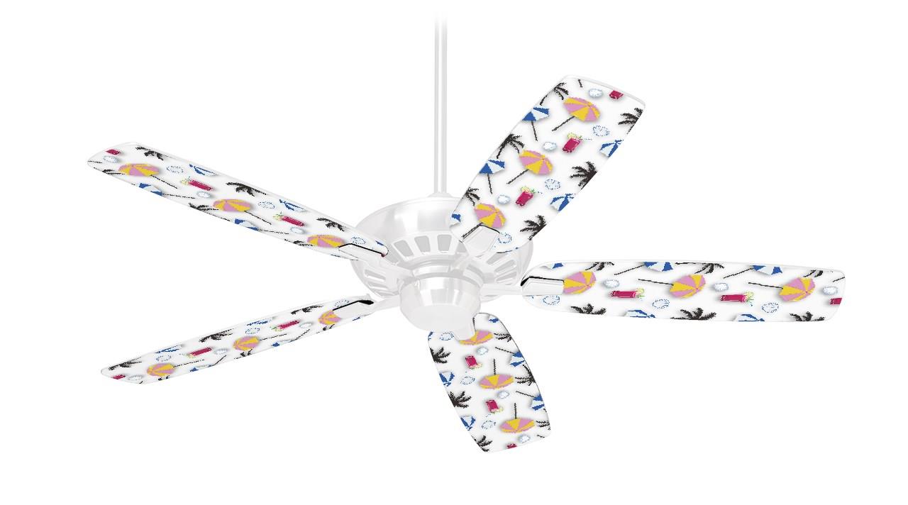 Beach Party Umbrellas White - Ceiling Fan Skin Kit fits most 42 inch fans (FAN and BLADES SOLD SEPARATELY)