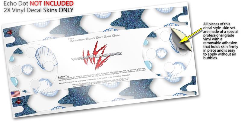Skin Wrap Decal Set 2 Pack for Amazon Echo Dot 2 - Starfish and Sea Shells White (2nd Generation ONLY - Echo NOT INCLUDED)
