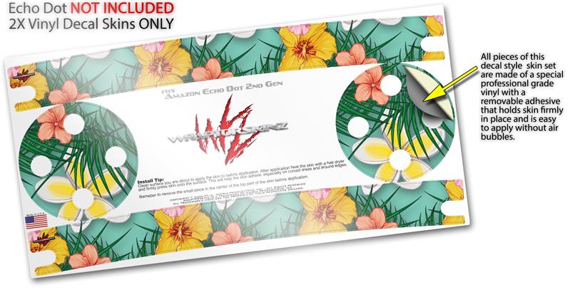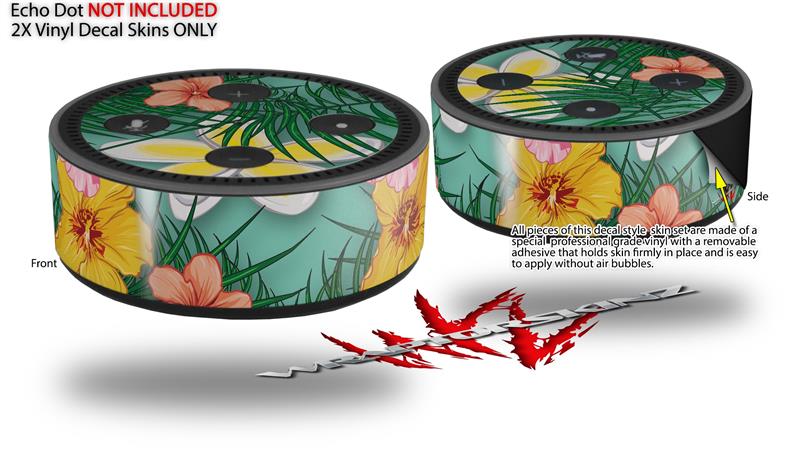 Skin Wrap Decal Set 2 Pack for Amazon Echo Dot 2 - Beach Flowers 02 Seafoam Green (2nd Generation ONLY - Echo NOT INCLUDED)