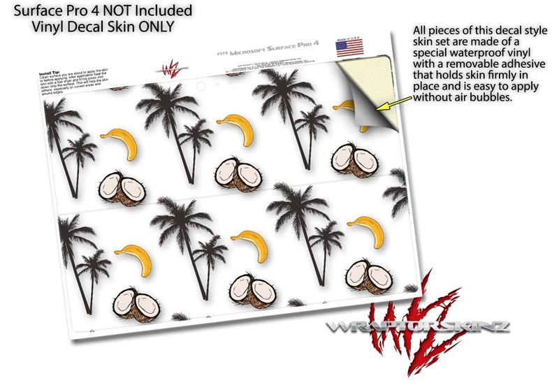 Coconuts Palm Trees and Bananas White - Decal Style Vinyl Skin fits Microsoft Surface Pro 4 (SURFACE NOT INCLUDED)