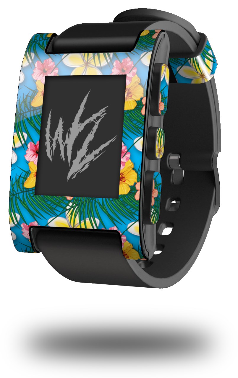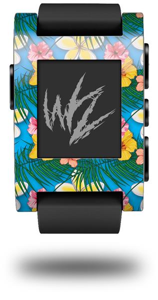 Beach Flowers 02 Blue Medium - Decal Style Skin fits original Pebble Smart Watch (WATCH SOLD SEPARATELY)