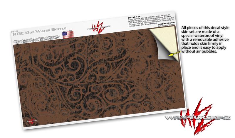 Skin Decal Wrap for RTIC Water Bottle 17oz Folder Doodles Chocolate Brown (BOTTLE NOT INCLUDED)