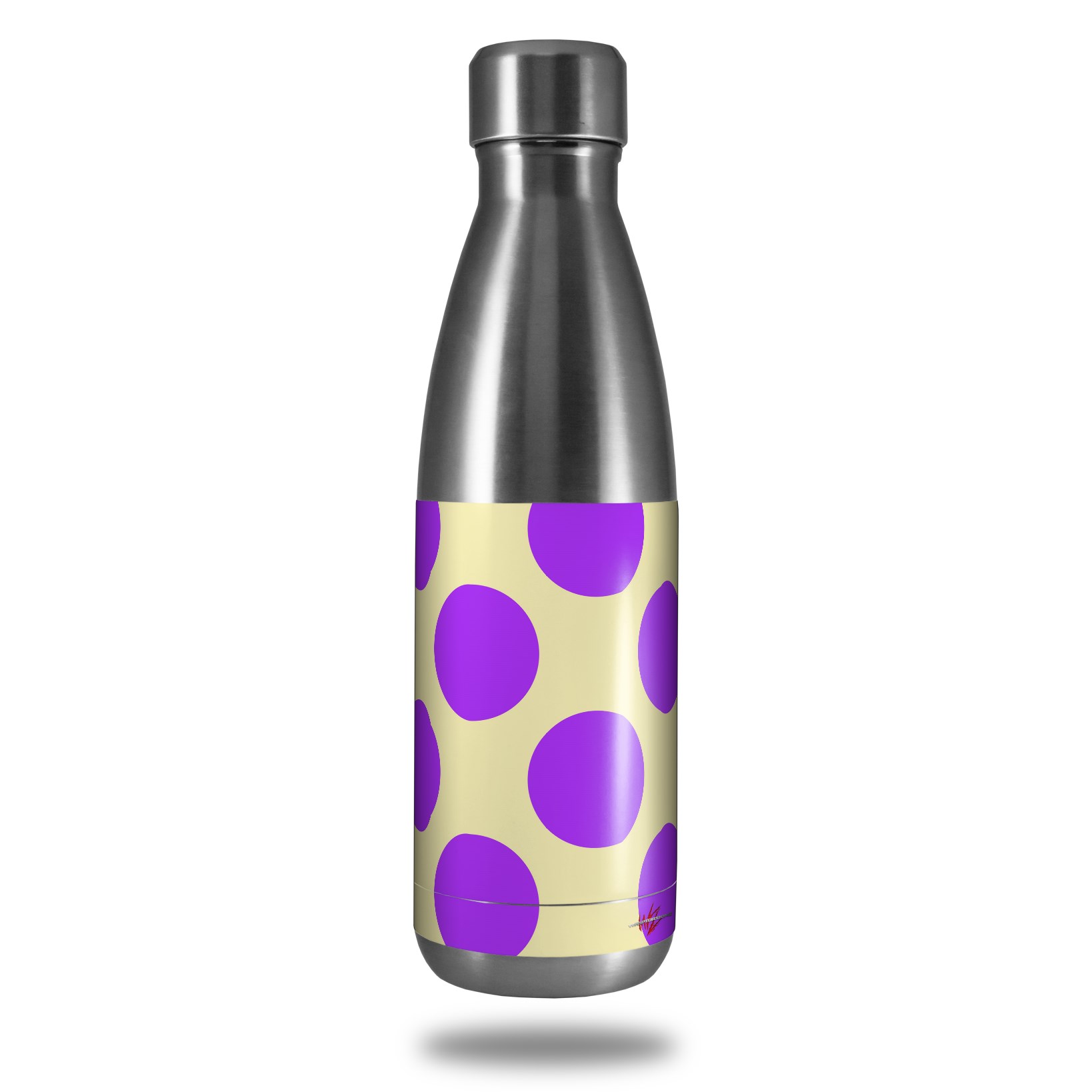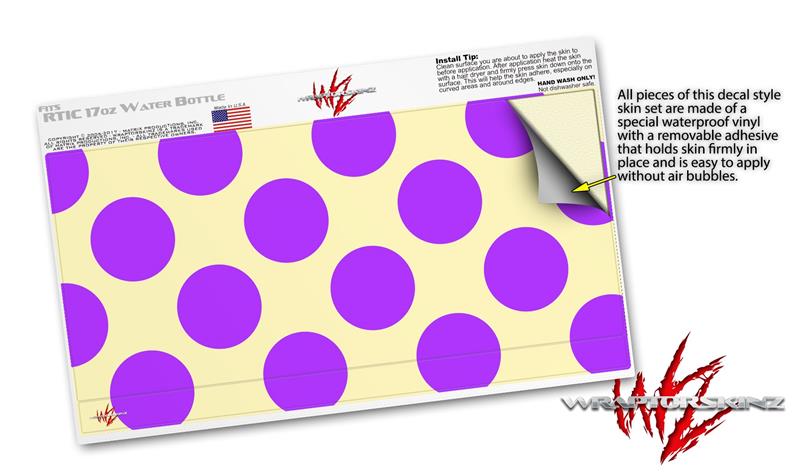 Skin Decal Wrap for RTIC Water Bottle 17oz Kearas Polka Dots Purple On Cream (BOTTLE NOT INCLUDED)