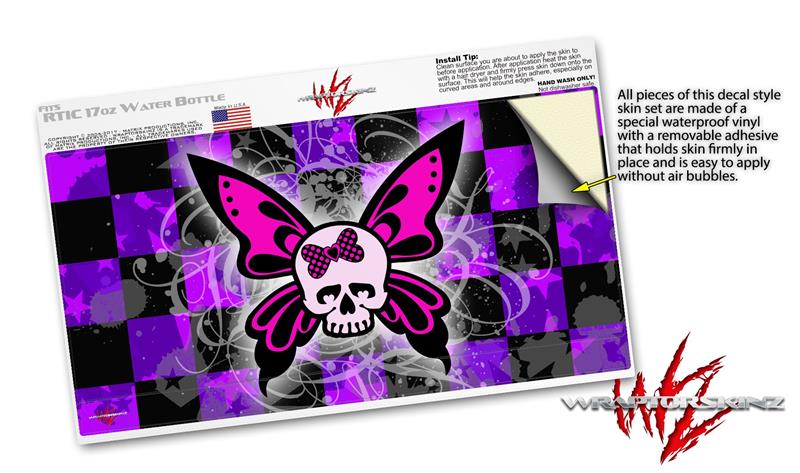 Skin Decal Wrap for RTIC Water Bottle 17oz Butterfly Skull (BOTTLE NOT INCLUDED)