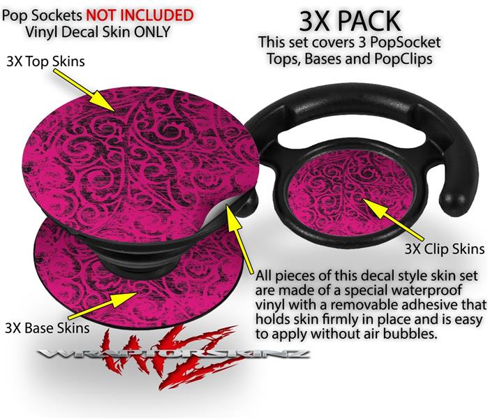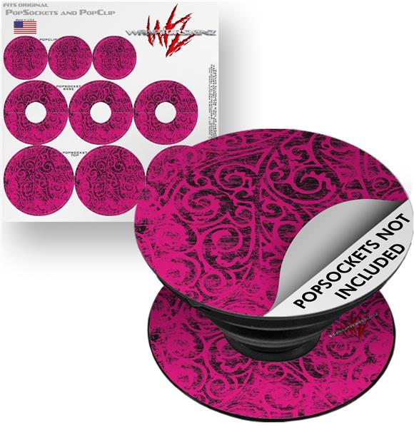 Decal Style Vinyl Skin Wrap 3 Pack for PopSockets Folder Doodles Fuchsia (POPSOCKET NOT INCLUDED)