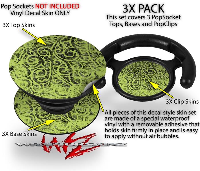 Decal Style Vinyl Skin Wrap 3 Pack for PopSockets Folder Doodles Sage Green (POPSOCKET NOT INCLUDED)