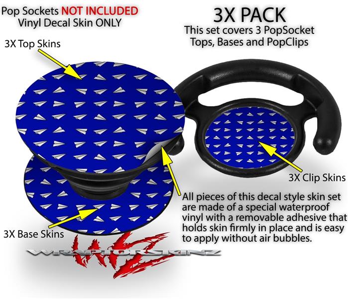 Decal Style Vinyl Skin Wrap 3 Pack for PopSockets Paper Planes Royal Blue (POPSOCKET NOT INCLUDED)