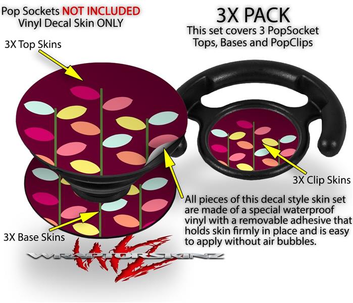 Decal Style Vinyl Skin Wrap 3 Pack for PopSockets Plain Leaves On Burgundy (POPSOCKET NOT INCLUDED)