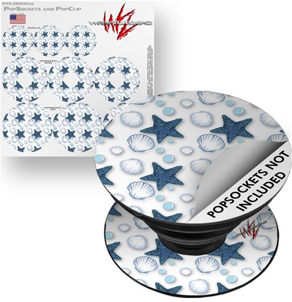 Decal Style Vinyl Skin Wrap 3 Pack for PopSockets Starfish and Sea Shells White (POPSOCKET NOT INCLUDED)