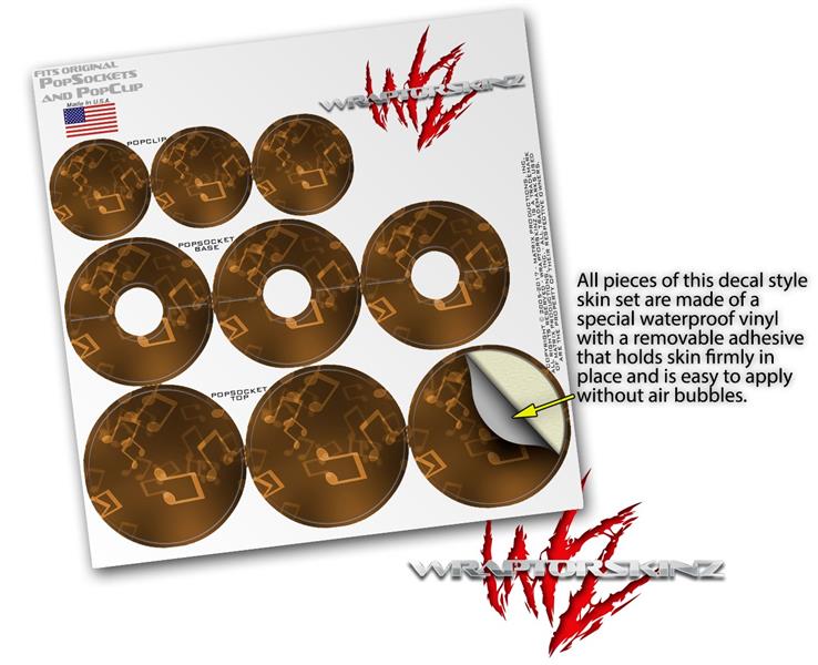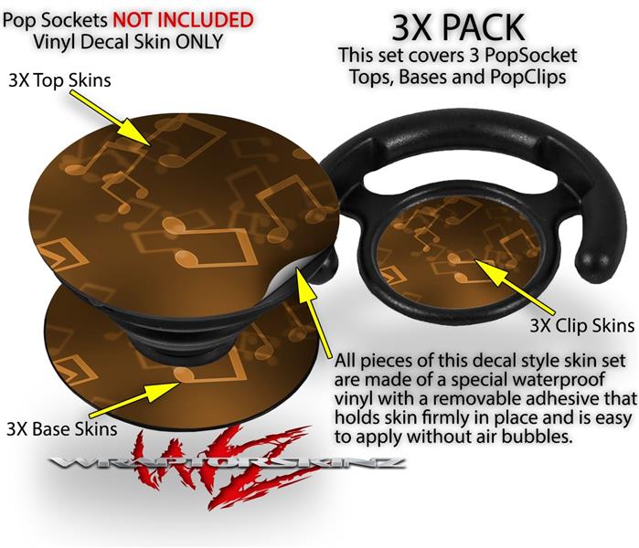 Decal Style Vinyl Skin Wrap 3 Pack for PopSockets Bokeh Music Orange (POPSOCKET NOT INCLUDED)